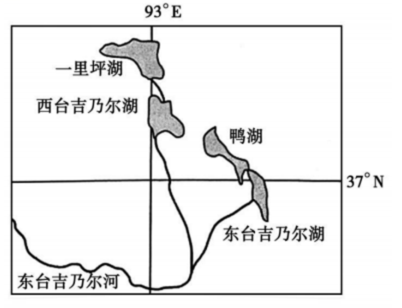 在地壳抬升和气候变化的双重作用下,古湖干涸,河湖相土状沉积物形成了平行槽垄状的雅丹地貌。近代以来,柴达木盆地气候不断向暖湿化转变,在台吉乃尔湖区,分布有世界罕见的水上雅丹。台吉乃尔湖区的锂资源丰富,为抽取、引流地下卤水,晒制、提取锂矿资源,采盐企业修建拦水坝阻断水道,使一里坪湖等几近干涸,鸭湖面积迅速扩大。近年来,鸭湖中一些柱状雅丹消失,部分水中雅丹摇摇欲坠。下图为台吉乃尔湖区简图。