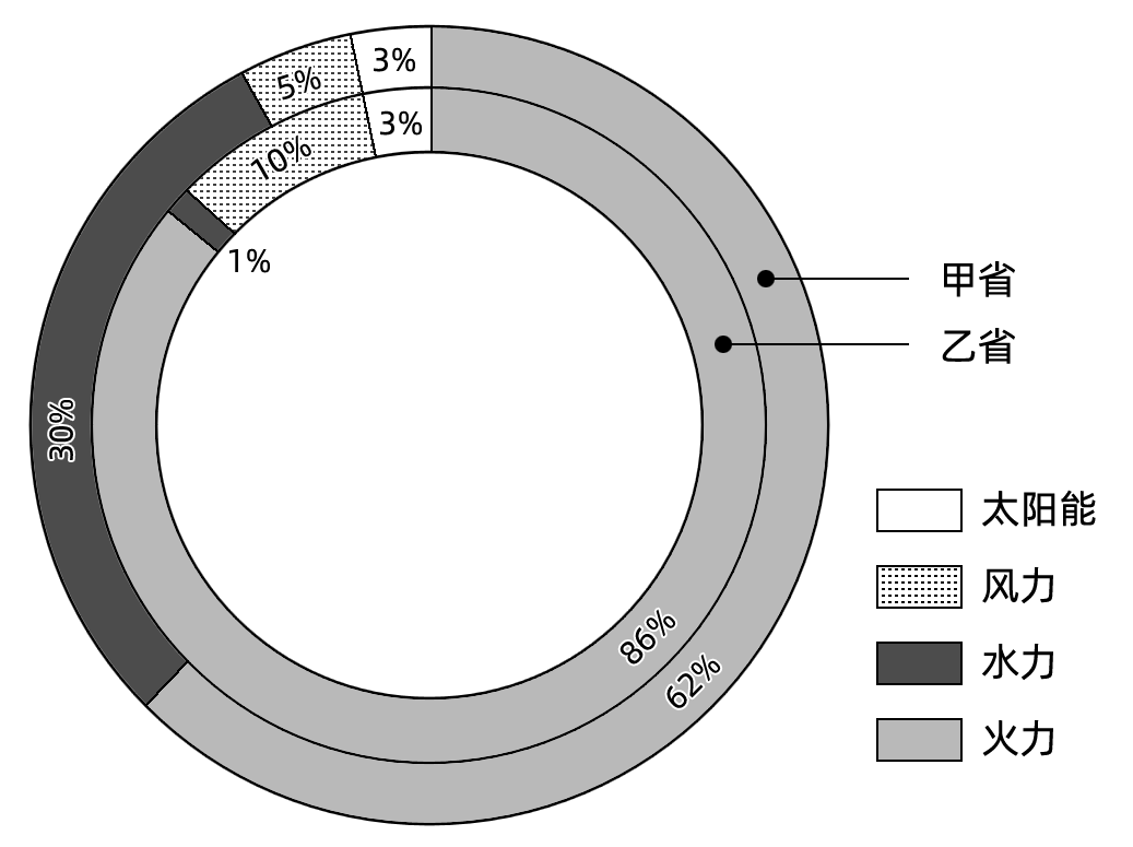 下图是我国甲、乙两省2021年1-11月发电结构图。两省都是西电东送工程中电力输出大省。甲省近年来发电结构加快由传统的“水火互济”向“水火风光”多能互补转化。完成下面小题。
