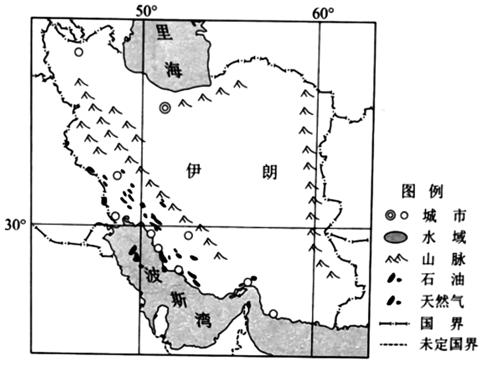 材料一:伊朗经济高度依赖于其丰富的油气资源,通过海运出口石油与石油化工产品。图1为伊朗及其周边区域略图。