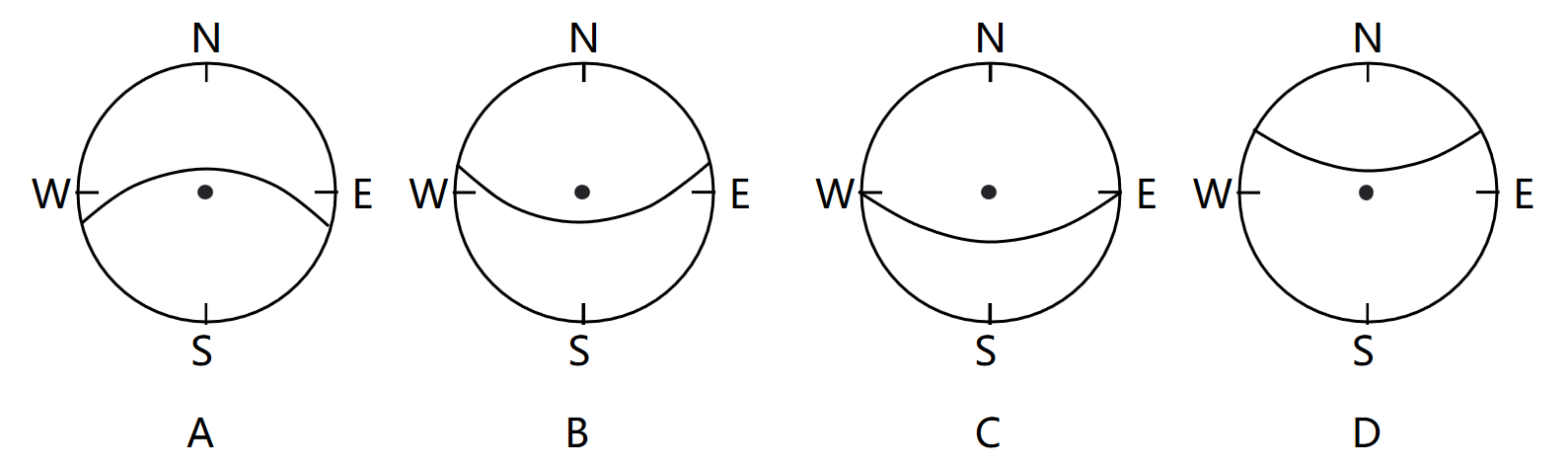 20. 夏至日,当地太阳视运动轨迹是( )
