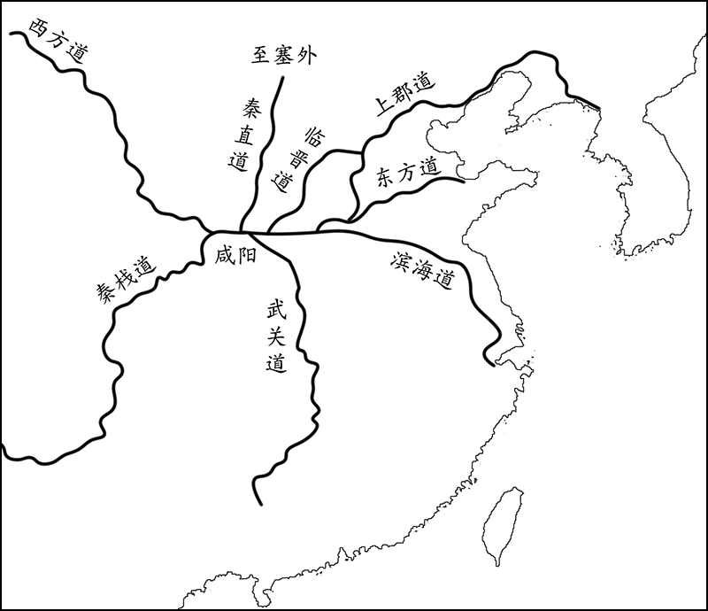 点睛:秦朝的驰道、直道构建了以首都咸阳为中心辐射全国的交通干线。