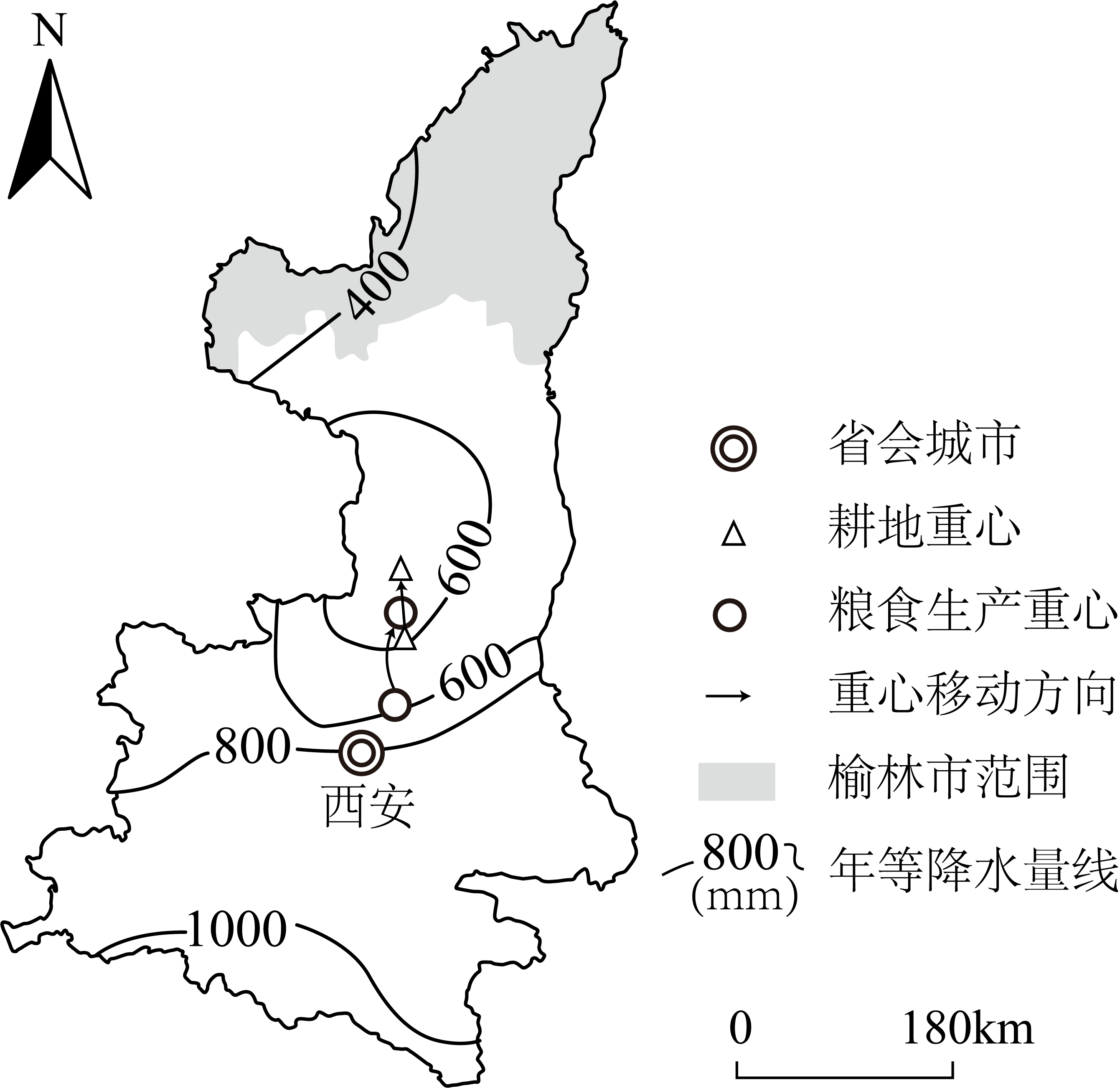 榆林市地处农牧交错地带,耕地后备资源充足。近年来,该市加大高标准基本农田建设,推广玉米、薯类等高产粮食作物种植。下图为2000~2019年陕西省耕地重心和粮食生产重心变化图。完成下面小题。