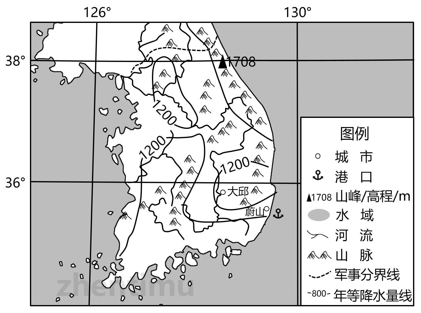 (1)简述韩国没有建设大型水电站的自然原因。(3分)