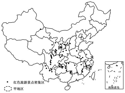 (1)分析甲地区红色旅游景点聚集的主要地理因素。(4分)