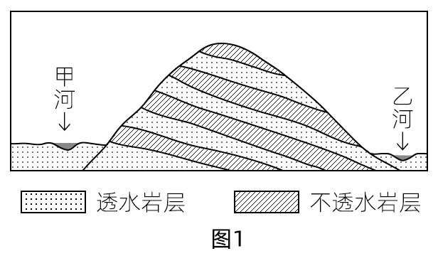 图1所示山地为甲、乙两条河流的分水岭,由透水和不透水岩层相间构成。在生态文明建设过程中,该山地被破坏的森林植被得以恢复,随之河流径流量发生了变化,河流径流的年内波动也减缓了。据此完成7-9题。