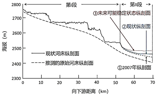 4.在第II段河床,纵剖面①→②→③的发育过程反映该段河床( )