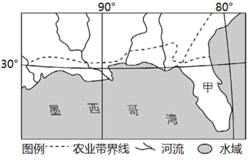 美国农业生产地区专门化特征明显,下图为美国农业带分布局部图。完成下面小题。