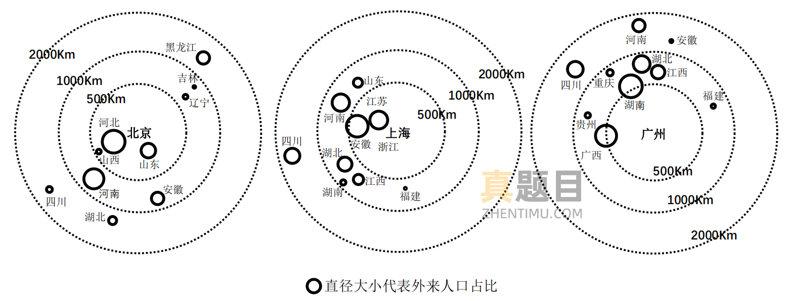 12. 从全国看,三大城市的外来人口省区分布具有明显的( )