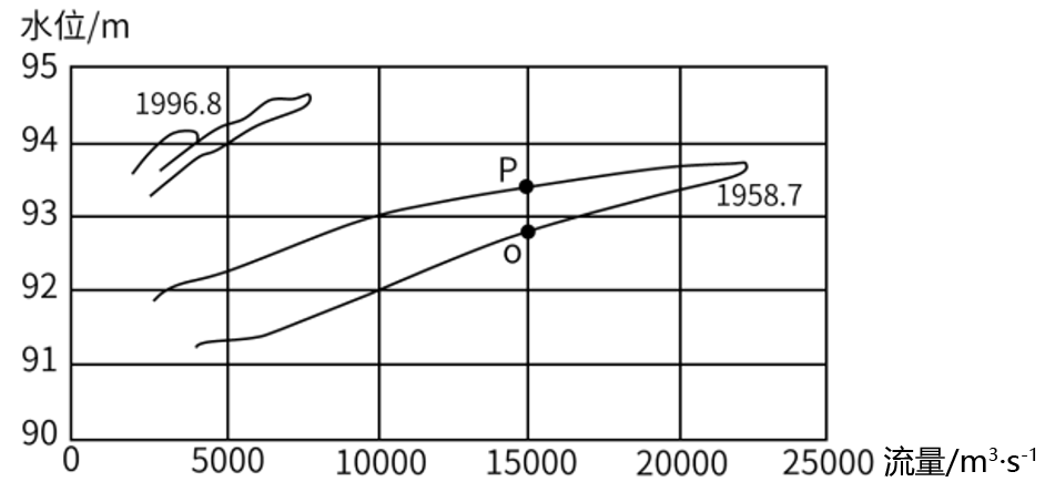7.1958年7月洪水过程中,图中O、P两点水位变化趋势及两点流速相比( )