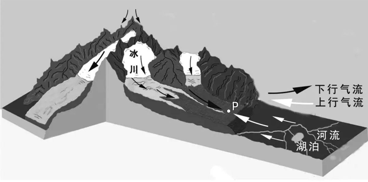 下图为珠穆朗玛峰南坡某冰川区暖季上、下气流运动状况示意图。据此完成下面小题