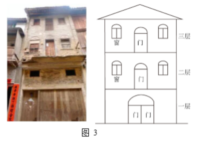 位于岭南山地的某县90%以上土地不适宜耕种和聚落建设,主要集镇位于较大的山间谷地。集镇住宅多为三层,其二层和三层也开有外门,如图3所示,尽管水淹频率很高,但这些集镇住宅“淹而不没,灾而无难”,据此完成9—11题。