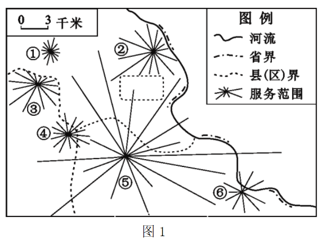 图1为某公共设施的服务范围示意图。读图,回答第3题。