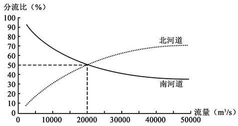 (2)研究发现,关洲河段年内流量常出现南、北河道主次变更现象。据此推测关洲河段南、北河道的特征。(4分)