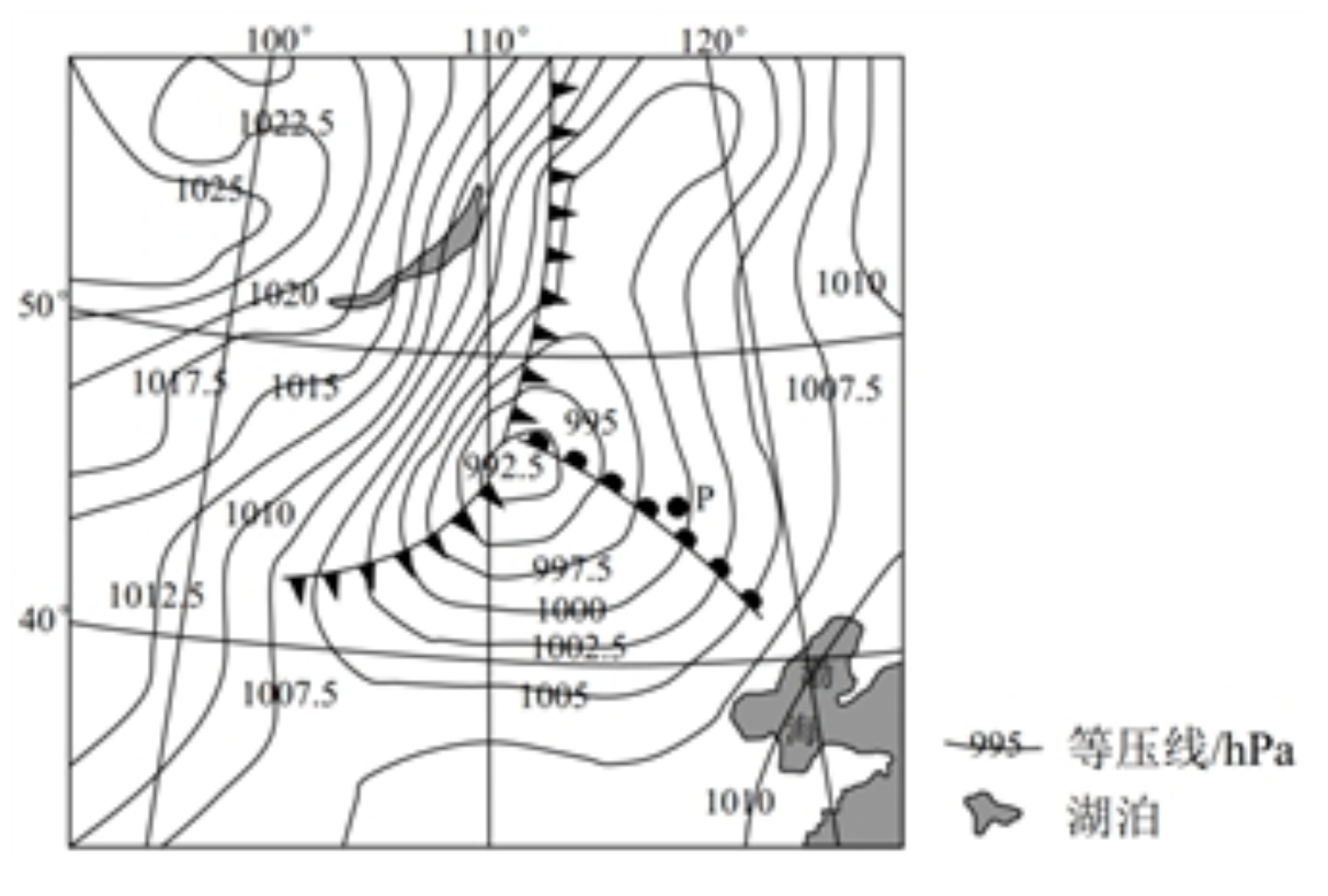 (2)T时刻该区域的锋面数量发生了变化。推测T时刻前该区域锋面的数量,并分别说明锋面形成的原因。(8分)