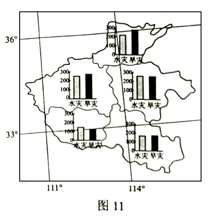 河南省按水文气象特点可分为5区。图11示意河南省水文气象区1450~1979年水旱灾害年数。