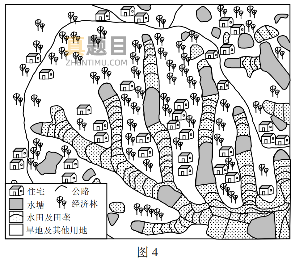 因地制宜发展农业生产是保障粮食安全的重要举措。图4为2021年由遥感影像解译转绘的“安徽省某地土地利用示意图”。据此回答8 ~10题。