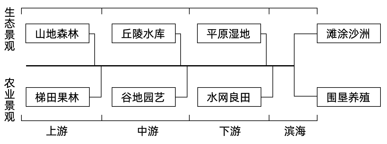 我国东南沿海地区独流入海河流径流量较大,流程较短。此类河流所在小流域的生态、农业、城镇等要素多形成上游-中游-下游-滨海的四段式空间分布序列。下图为独流入海河流小流域生态、农业景观示意图。完成下面小题。