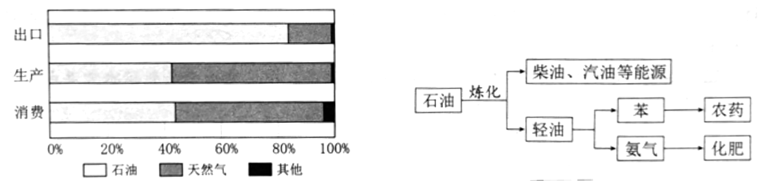材料二:伊朗长期以来都是汽油净进口国,直到2019年2月才实现自给自足。图2为伊朗能源生产、消费及出口结构图,图3为伊朗石油化工产业链(部分)示意图。