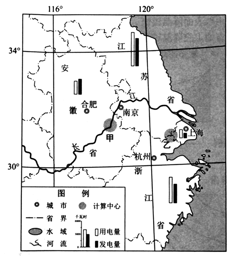 材料二:下图为长三角及其周边地区简图。甲、乙两地为“东数西算”工程中的两个计算中心。计算中心硬件设施强,耗能高。