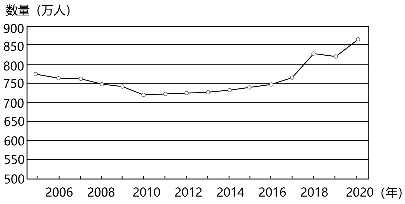 下图为浙江省2005-2020年少年儿童人口(0-14岁)数量变化图。完成下面小题。