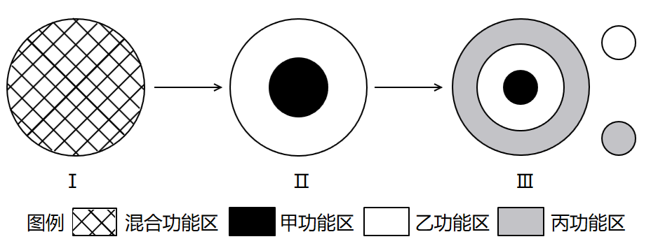 城市空间结构随城市的发展发生变化。下图为不同阶段城市空间结构模式示意图。完成下面小题。