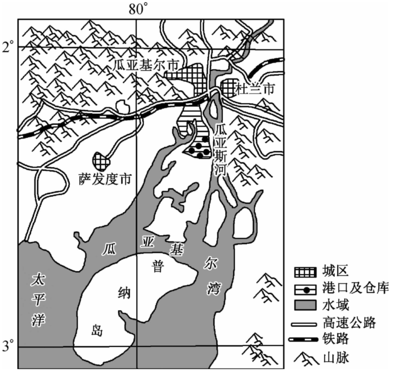光缆是通信线缆组件,是实现光信号传输的一种通信线路。目前我国的光纤企业众多,国内光缆需求为1.41亿芯千米时,产能已经达到了2.4亿芯千米,且同质化严重。某光缆企业响应国家“走出去”战略,在厄瓜多尔最大港口瓜亚基尔市附近的杜兰市投资设厂,这是我国IT行业在厄瓜多尔建设的首个高技术实体产业合资项目,未来生产的产品除进入厄瓜多尔本地市场外,还将出口至周边国家。下图示意杜兰市地理位置。据此完成5~7题。