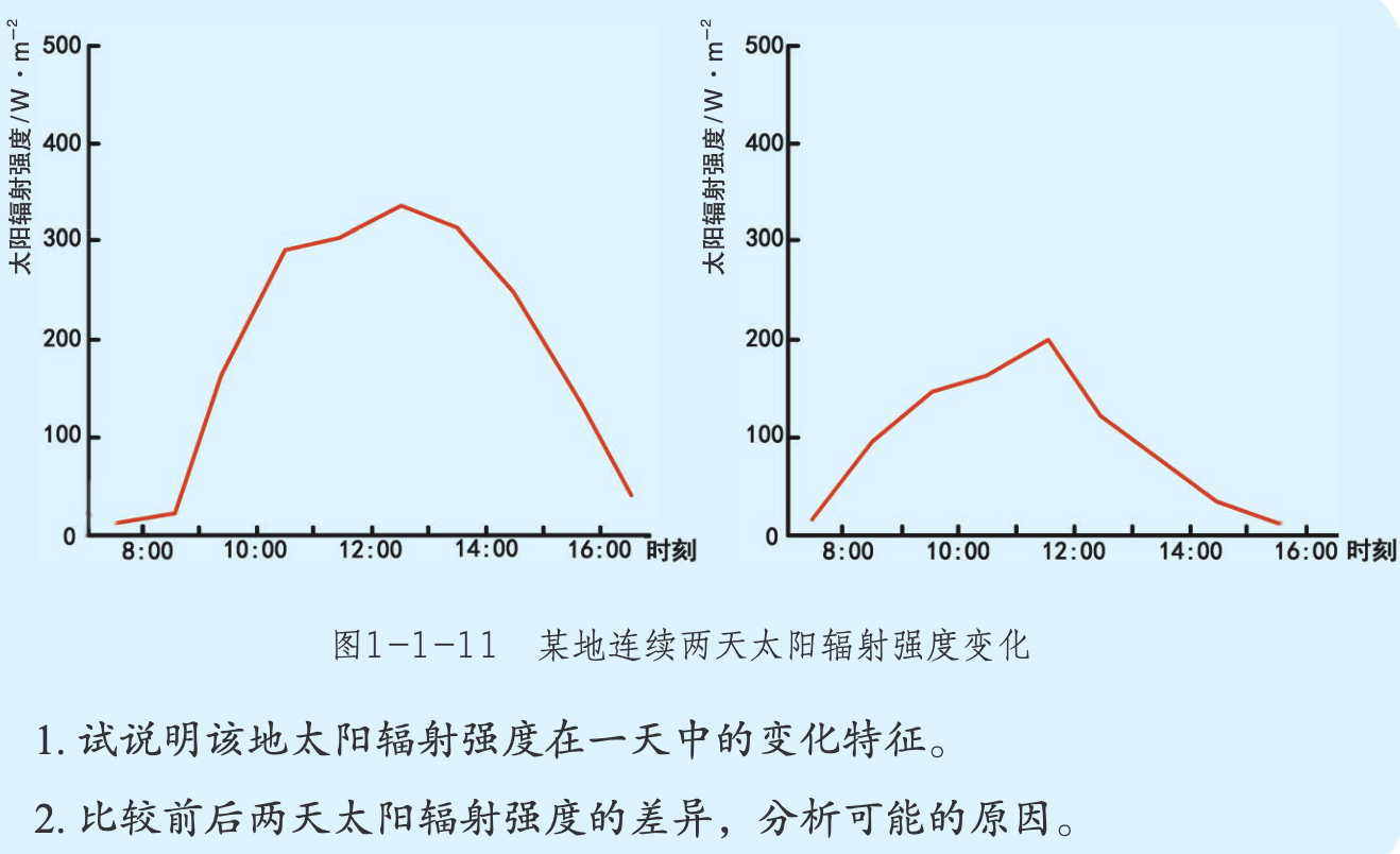 我国西藏阿里地区的冈底斯藏医学院,海拔高,自然环境恶劣,地理位置偏远,过去学校的电力供应一直比较紧张,每天最多只能供电三小时,学生们早晚读书受到很大影响。2015年,学校建成太阳能光伏电站(图1.11),实现了24小时不间断供电。除了利用太阳能发电,你知道太阳对我们的生存环境,以及生产、生活还有哪些影响吗?