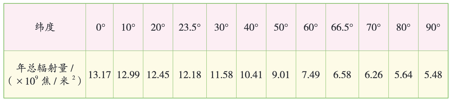 (2)地球表面可划分为热带、温带、寒带等不同的天文气候带。议一议,它与大气上界太阳辐射的分布有无相关性?说明你的理由。