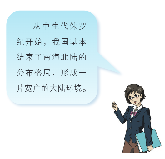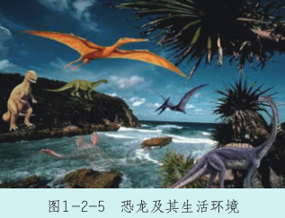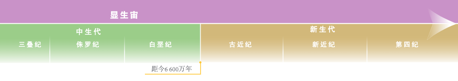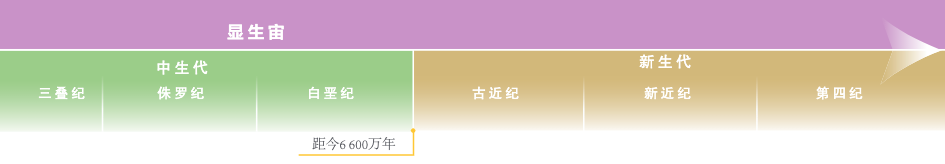 中生代(距今2.52亿年-6 600万年)意为“中间的生物时代”,因介于古生代和新生代之间而得名,分为三叠纪、侏罗纪和白垩纪。