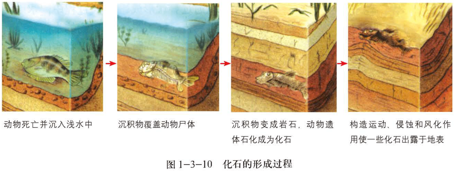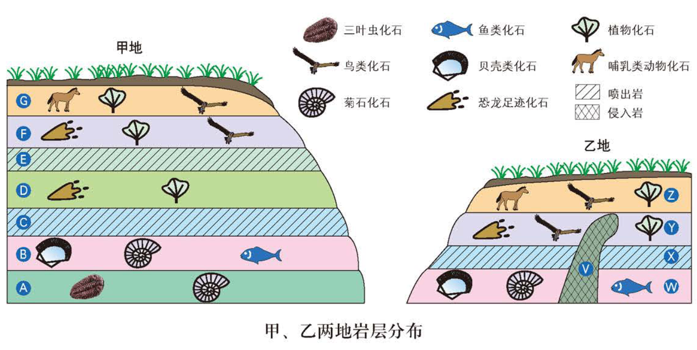 生物是由低级向高级、由简单到复杂不断进化的,所以不同年代的地层一般含有不同的化石,而相同年代的地层里往往保存着相同或相近的化石。