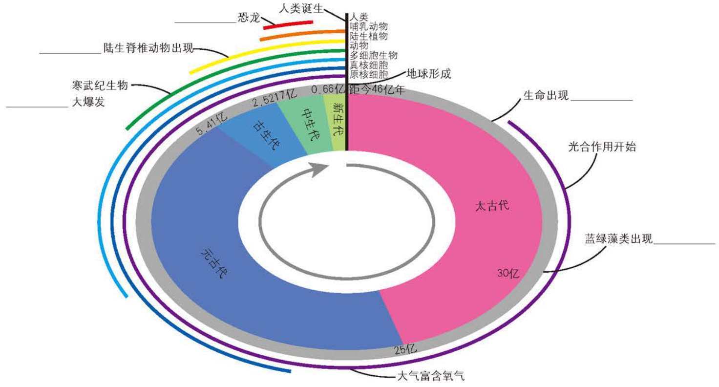提示:边阅读边列出一张地质年代表,同时在表中相应位置标出地球和地球上生命演化过程中的主要事件。