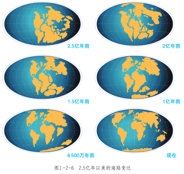 读图1-2-6,分析6500万年以来海陆格局的主要变化。