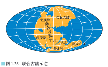 古生代期间地壳运动剧烈,许多地方反复上升和下沉,海陆格局发生了多次大的变迁,到了后期地球各块大陆汇聚成一个整体,称为联合古陆(图1.26)。