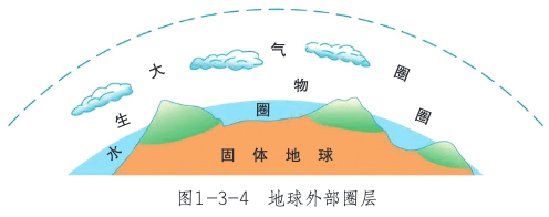 地球固体表面以上的各个圈层,称为外部圈层。外部圈层可以分为大气圈、水圈和生物圈