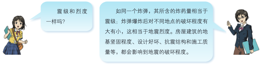 地震的大小用震级表示。地震释放出来的能量越大,震级越高。一次地震,只有一个震级。一般来说,5级以上的地震会造成不同程度的破坏,7级以上的地震常造成极大的破坏。地震对地表和建筑物等破坏强弱的程度,用烈度表示。一次地震,可以有多个烈度。