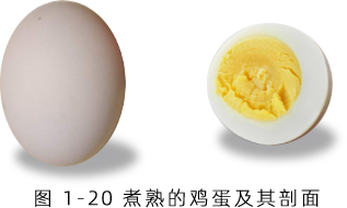 2.如图 1-20,我们将煮熟的鸡蛋一切两半,便会呈现蛋壳、蛋白、蛋黄三个圈层。结合所学知识和生活常识,比较煮熟的鸡蛋与地球内部圈层的异同。