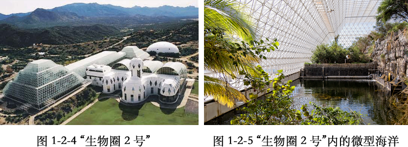 1991年9月26日,第一批8名科研人员进驻“生物圈2号”他们只带入一批植物种子和少量必备物品。能源取自太阳能,氧气由自己种的植物制造,粮食靠自己种植,肉类和蛋白质取自自己养的鸡、鸭、猪、羊等,连生物圈内的气候,也需要研究者自己控制并尽可能地模拟地球气候。这些说着容易,做起来难。例如,绿色植物过多,没有充足的肥料和二氧化碳供植物呼吸,植物会死亡;他们想多吃肉食,必须多养动物,而动物过多,粮食和饲料就会紧张,氧气的消耗会增加,空气中的二氧化碳浓度会升高,从而影响研究者自身生存。这一切都需要研究者周密计划和细致安排,任何一方面出现偏差,都可能导致整个实验前功尽弃。