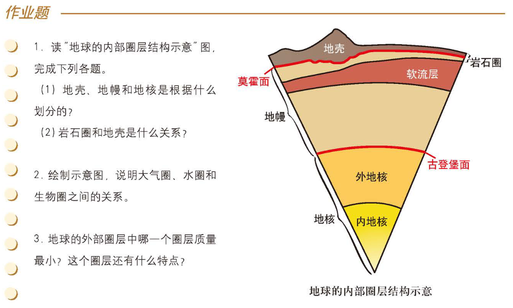 本节内容在湘教版必修一教材里是第三节内容,名称为《地球的圈层结构》
