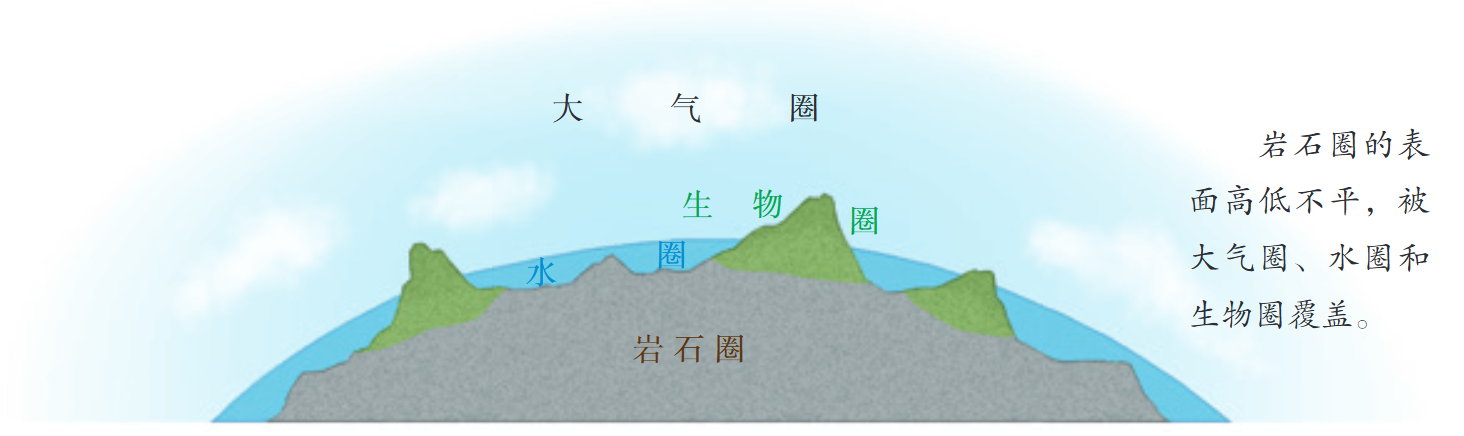 与太阳系的其他行星不同,地球不仅有岩石圈和大气圈,还有水圈和生物圈。这些圈层相互作用,形成了人类赖以生存的地球表层环境。