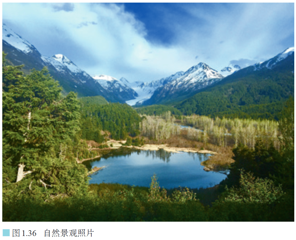 自然景观涉及大气圈、水圈、生物圈和岩石圈。图1.36 为一张自然景观照片。
