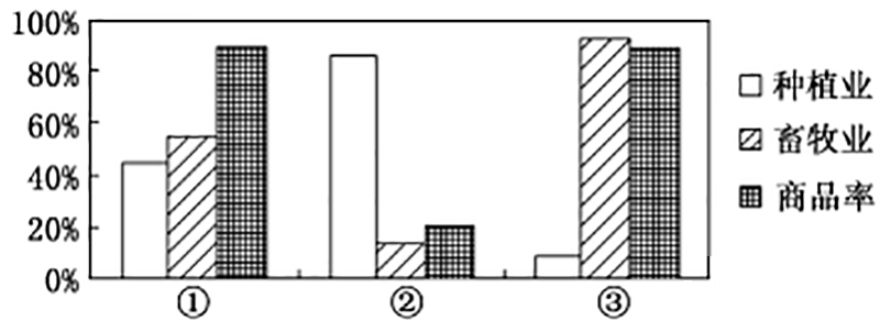 解析:①地区种植业和畜牧业比例都比较高,而且商品率高,可能是混合农业,A错;②地区的种植业比重大但商品率低,可能是季风水田农业,B错;③地区畜牧业比重高而且商品率高,可能是大牧场放牧业,C对;①③地农业机械化水平高,不属于传统农业,D错,故选C。