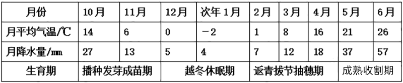 下表是我国某农作物全生育期及主产区典型测站的气候数据。完成7~8题。