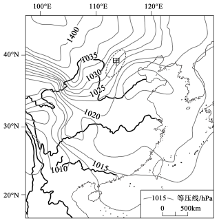 气象条件是影响大气污染的重要因素之一,2020年12月11~13日,长三角及周边地区发生一次空气污染事件。12日,该区域内部分地区大气颗粒物(PM)浓度达到重度污染标准;13日,各地污染状况先后缓解。下图示意北京时间12日20时亚洲局部地区海平面气压形势。据此完成下面小题。