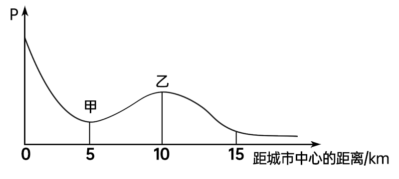 某单中心城市,各方向发展比较均衡,城市中心附近人口和产业分布过于集中,交通拥堵,人居环境较差。下图示意该城市某个方向的土地价格(P)变化。据此完成4~5题。