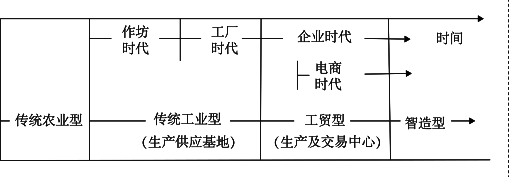 浙江省温岭市制鞋业发达,Z镇是该市最大制鞋基地,其制鞋业始于20世纪80年代。近年来,随着电商的发展,该镇制鞋业趋于更加灵活化。图示意Z镇制鞋业发展历程。据此完成下面小题。