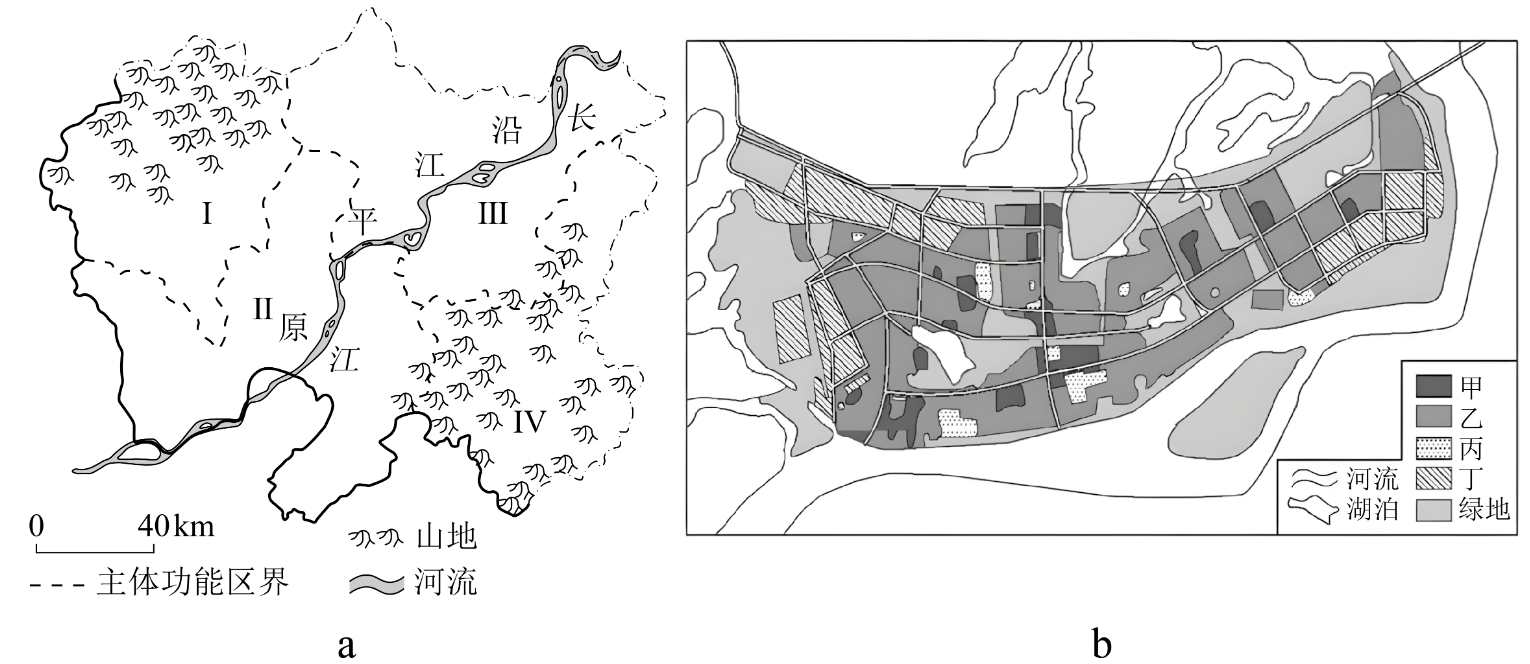 图a为安徽省局部地形简图,图b示意该区域某城市内部空间结构。读图,完成下面小题
