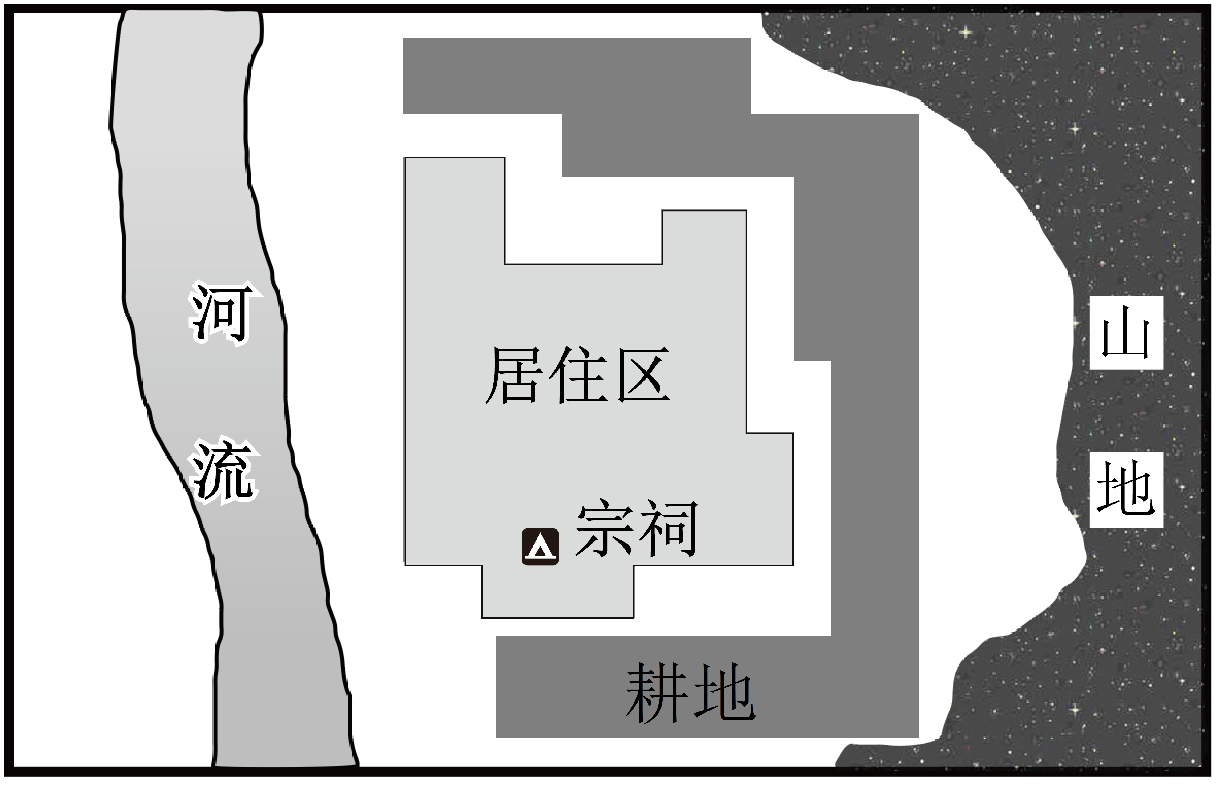 浙江省楠溪江流域的屿北村坐落在山麓河谷地带。在由南向北发展的过程中,该传统村落逐渐形成了“小型房屋-中型院落-房族大院-族群单元”4个层级的院落空间形态。宗祠具有同族人共同祭祀祖先的功能,通常坐落在村落中心位置。下图示意屿北村空间形态。据此完成下面小题。