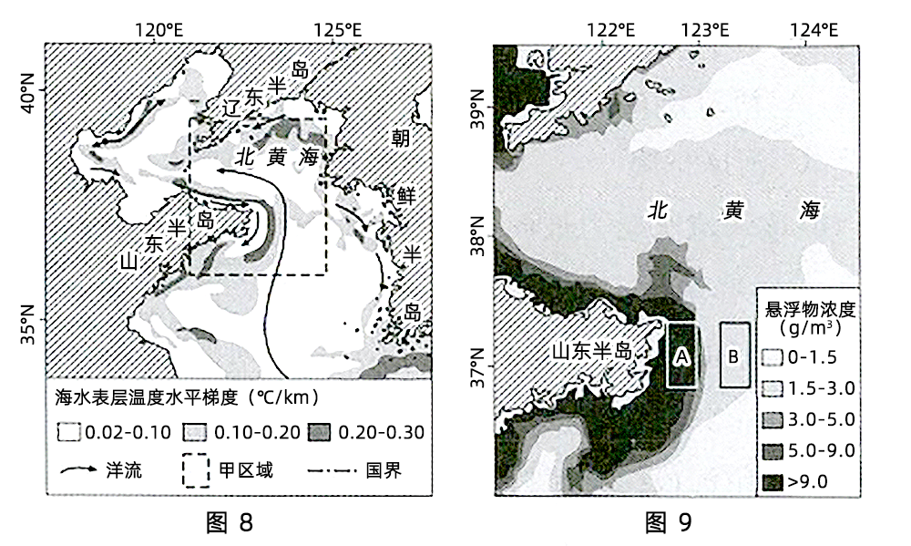 (2)分析图2中A、B海域悬浮物浓度存在显著差异的原因。(6 分)